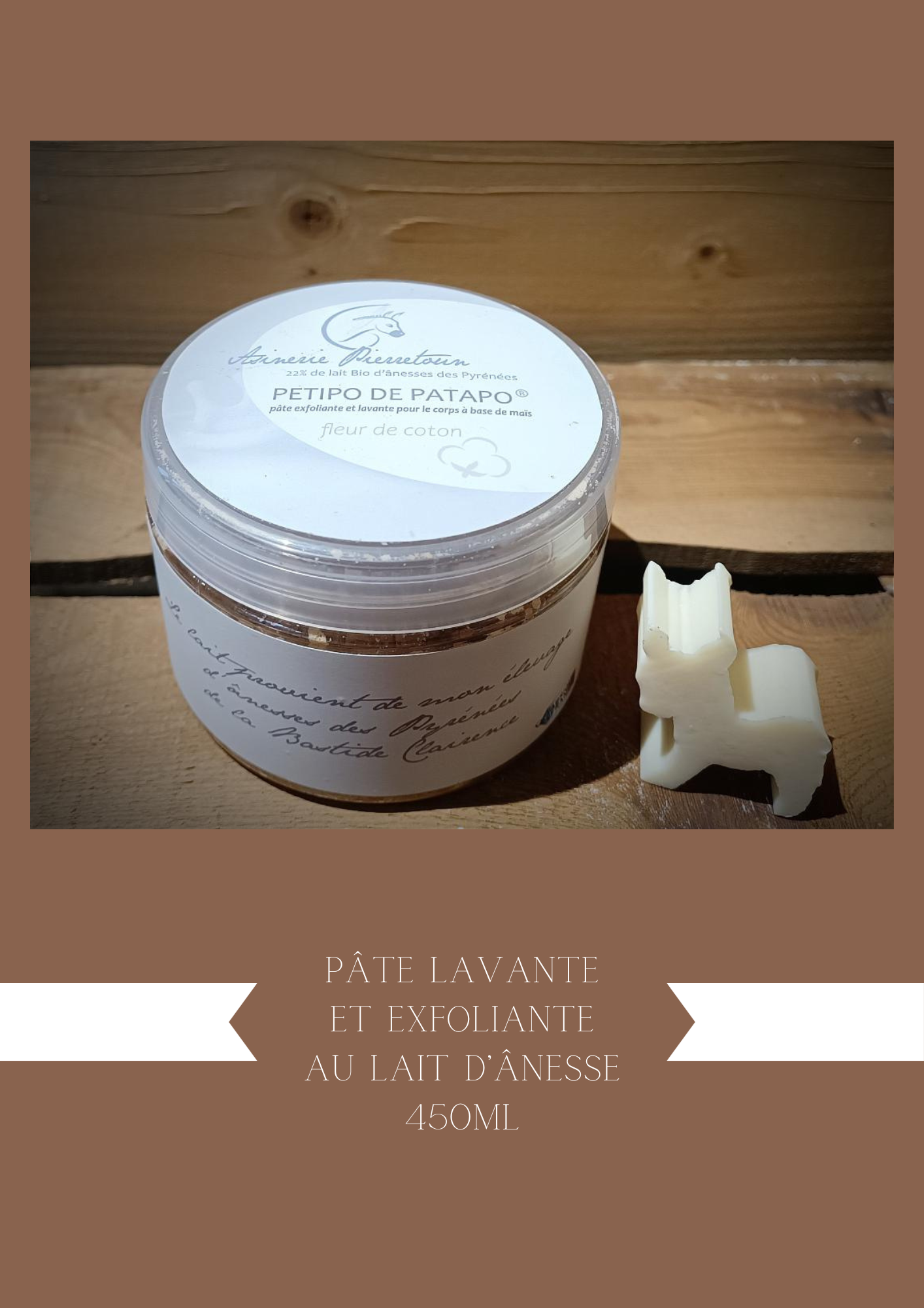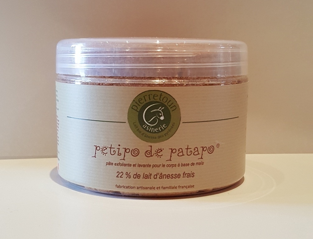 Le Petipo de Patato, une pâte exfoliante composée de rafles de maïs associée à notre base lavante naturelle et à 22% de lait d'ânesse bio.